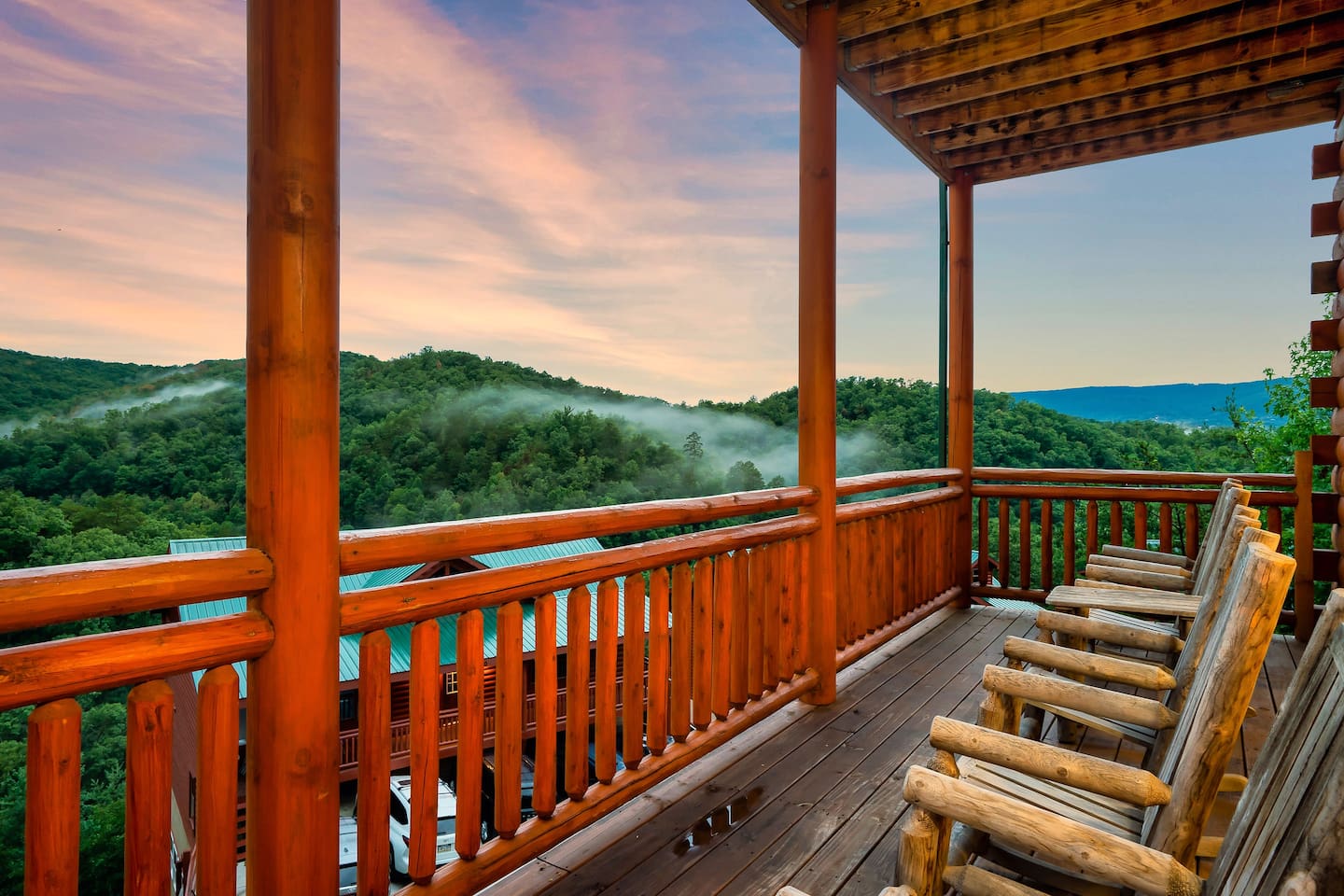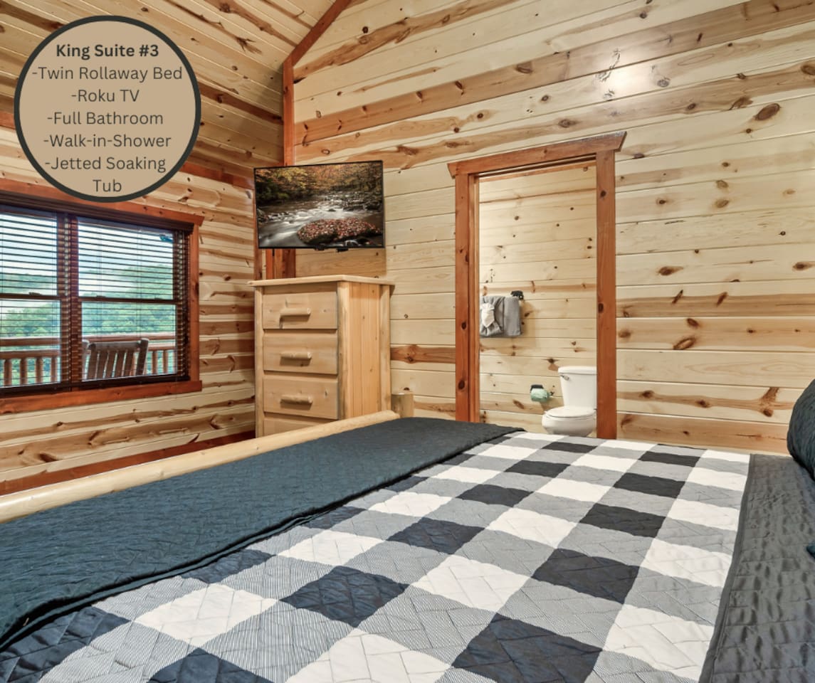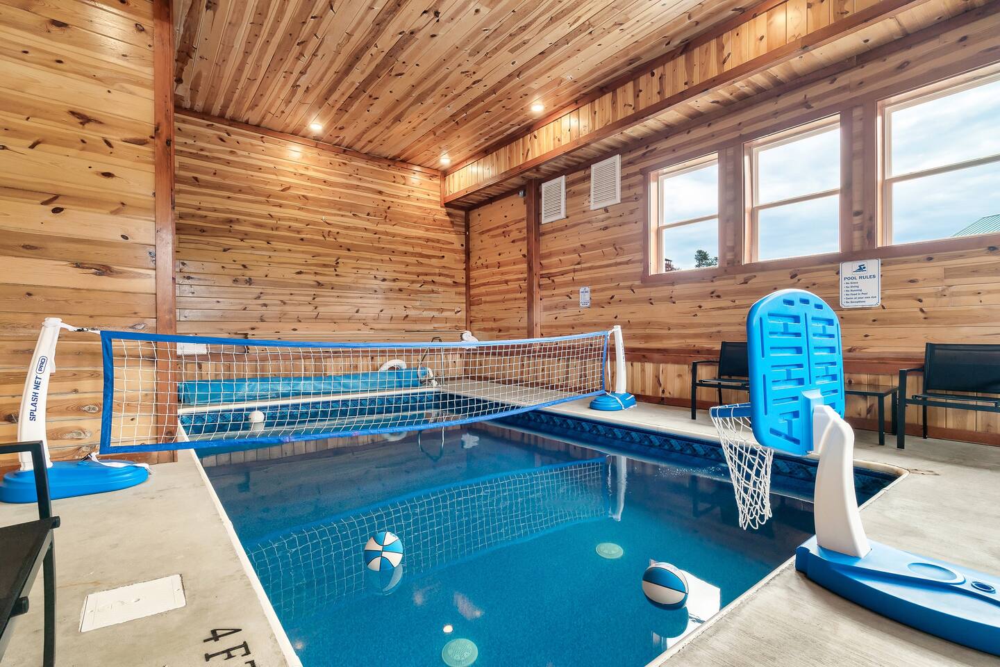 Welcome to Heaven’s Dream Cabin located in Sevierville, TN. Check us out on our website and social media for additional cabin information and videos. Nestled within the tranquil Smoky Mountain Ridge Resort, this exquisitely decorated 3-story mountain retreat offers the ultimate blend of convenience and rustic charm. Located just off the beaten path, you'll find yourself immersed in the serene beauty of the Smoky Mountains while still enjoying easy access to nearby towns. Step inside this recently updated cabin and be prepared to be amazed. With three decks offering breathtaking panoramic views, you'll have the perfect vantage point to soak in the natural splendor that surrounds you. And that's not all - this cabin is packed with all the premiere amenities you could ever dream of. No matter the season, you can take a dip in the heated indoor pool, maintained at a comfortable temperature between 75-80 degrees. Relax and rejuvenate as you enjoy the soothing waters, regardless of the weather outside. With six master suites, there's no shortage of space for everyone to rest and recharge. Comfortably accommodating up to 12 guests, this cabin ensures that everyone has their own private sanctuary to retreat to after a day of adventures. But the fun doesn't stop there! The game room beckons with a pool table and arcade games, providing hours of entertainment for the whole family. And for the ultimate movie night experience, retreat to the private media room, complete with an incredible 85 inch HDTV that will transport you right into the heart of the action. Prepare yourself for an unforgettable stay at this mountain retreat, where comfort, luxury, and natural beauty merge to create an experience you'll cherish forever. This prime location is close to all restaurants and attractions: Pigeon Forge Parkway (4 miles, approximately 5 minutes), Dollywood (9 miles, approximately 19 minutes), Gatlinburg (15 miles, approximately 30 minutes), Great Smoky Mountains National Park (16 miles, approximately 30 minutes). **PLEASE READ THIS ENTIRE SECTION, OTHER THINGS TO NOTE, AND HOUSE RULES BEFORE BOOKING** FLOORPLAN **This is a 3-level cabin. There are plenty of stairs. There are no bedrooms/bathrooms on the main level (see floor plan). GROUND LEVEL: parking, kitchen, living room with electric fireplace, pool, hot tub, deck with outdoor seating, propane grill, high chair (There is no bedroom or bathroom on the ground level) SECOND FLOOR: 1 king bedroom with bathroom with twin rollaway bed (shower only), 2 twin/twin bunk bedroom with bathroom (shower/tub combo) with twin rollaway bed; game room with pool table, arcade, media room, W/D laundry, deck with outdoor seating, pack-n-play THIRD FLOOR: 4 king bedrooms with full bathrooms, each have a twin rollaway bed, workspace, deck with outdoor seating, pack-n-play