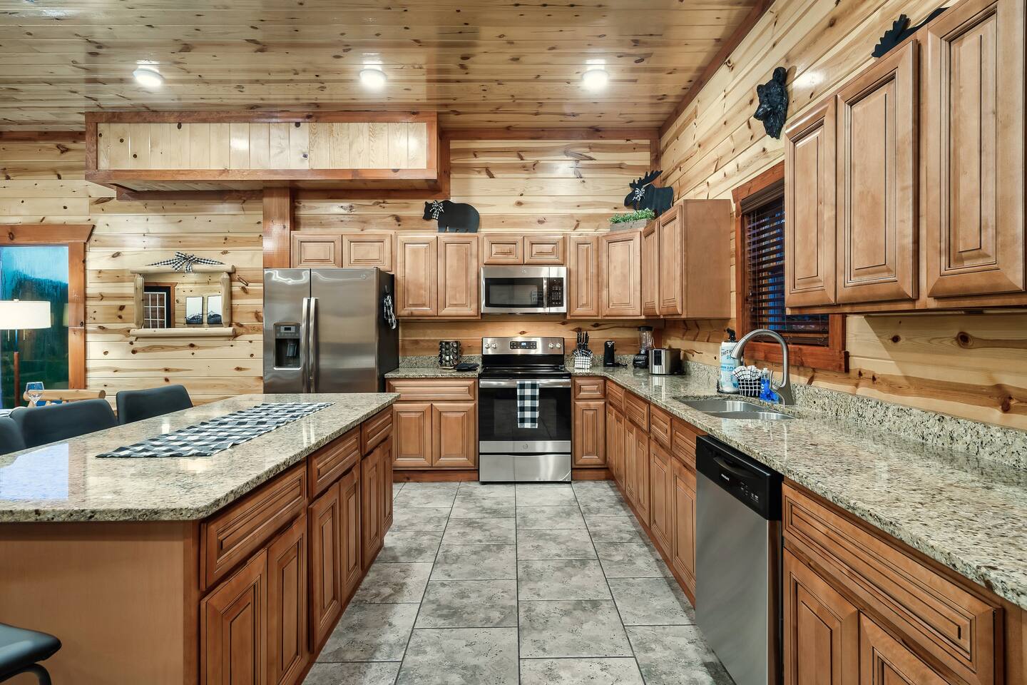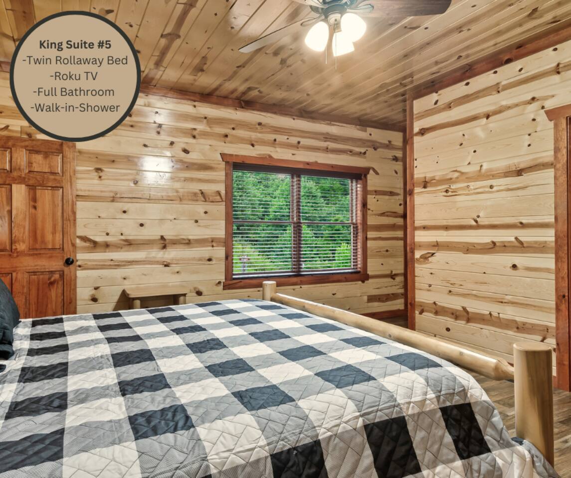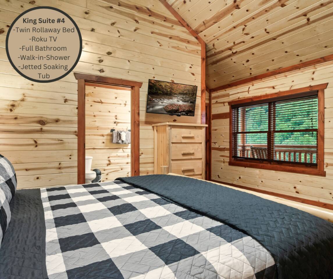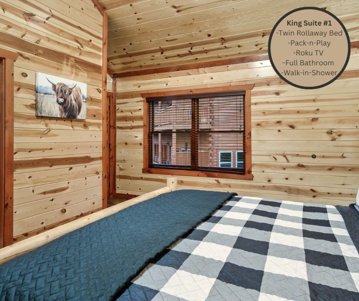 Welcome to Heaven’s Dream Cabin located in Sevierville, TN. Check us out on our website and social media for additional cabin information and videos. Nestled within the tranquil Smoky Mountain Ridge Resort, this exquisitely decorated 3-story mountain retreat offers the ultimate blend of convenience and rustic charm. Located just off the beaten path, you'll find yourself immersed in the serene beauty of the Smoky Mountains while still enjoying easy access to nearby towns. Step inside this recently updated cabin and be prepared to be amazed. With three decks offering breathtaking panoramic views, you'll have the perfect vantage point to soak in the natural splendor that surrounds you. And that's not all - this cabin is packed with all the premiere amenities you could ever dream of. No matter the season, you can take a dip in the heated indoor pool, maintained at a comfortable temperature between 75-80 degrees. Relax and rejuvenate as you enjoy the soothing waters, regardless of the weather outside. With six master suites, there's no shortage of space for everyone to rest and recharge. Comfortably accommodating up to 12 guests, this cabin ensures that everyone has their own private sanctuary to retreat to after a day of adventures. But the fun doesn't stop there! The game room beckons with a pool table and arcade games, providing hours of entertainment for the whole family. And for the ultimate movie night experience, retreat to the private media room, complete with an incredible 85 inch HDTV that will transport you right into the heart of the action. Prepare yourself for an unforgettable stay at this mountain retreat, where comfort, luxury, and natural beauty merge to create an experience you'll cherish forever. This prime location is close to all restaurants and attractions: Pigeon Forge Parkway (4 miles, approximately 5 minutes), Dollywood (9 miles, approximately 19 minutes), Gatlinburg (15 miles, approximately 30 minutes), Great Smoky Mountains National Park (16 miles, approximately 30 minutes). **PLEASE READ THIS ENTIRE SECTION, OTHER THINGS TO NOTE, AND HOUSE RULES BEFORE BOOKING** FLOORPLAN **This is a 3-level cabin. There are plenty of stairs. There are no bedrooms/bathrooms on the main level (see floor plan). GROUND LEVEL: parking, kitchen, living room with electric fireplace, pool, hot tub, deck with outdoor seating, propane grill, high chair (There is no bedroom or bathroom on the ground level) SECOND FLOOR: 1 king bedroom with bathroom with twin rollaway bed (shower only), 2 twin/twin bunk bedroom with bathroom (shower/tub combo) with twin rollaway bed; game room with pool table, arcade, media room, W/D laundry, deck with outdoor seating, pack-n-play THIRD FLOOR: 4 king bedrooms with full bathrooms, each have a twin rollaway bed, workspace, deck with outdoor seating, pack-n-play