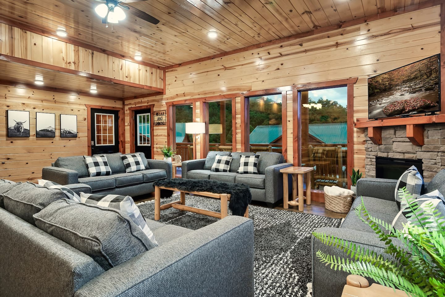 Please read all house rules prior to booking. We will send the address, door code, and an electronic house manual 3 days prior to your stay. **The heated indoor pool is maintained at a comfortable temperature between 75-80 degrees. This CANNOT be changed during your stay. If this temperature is not suitable for you or your guests, this is not the cabin for you. ⭐️ EV charging $20/stay.